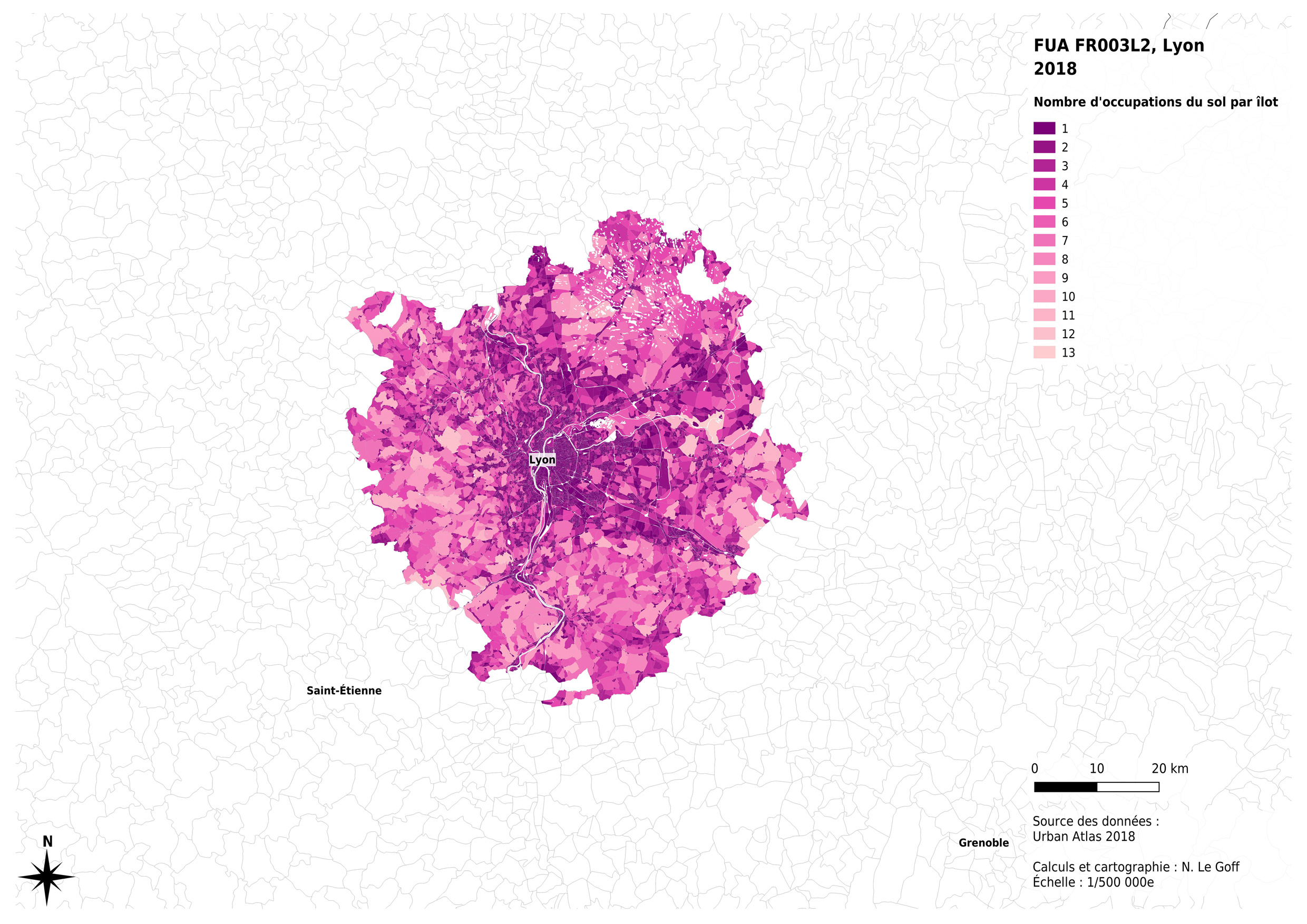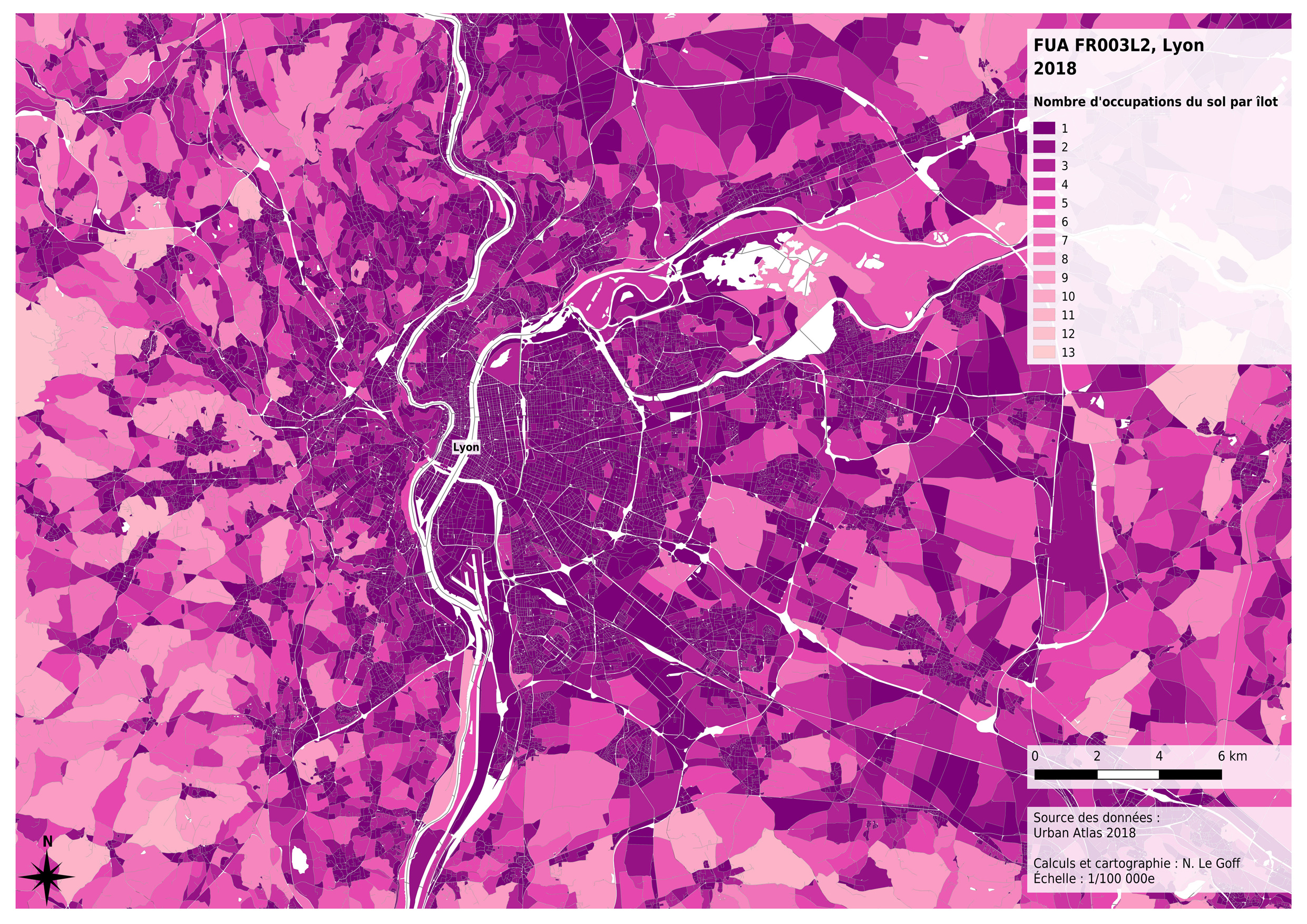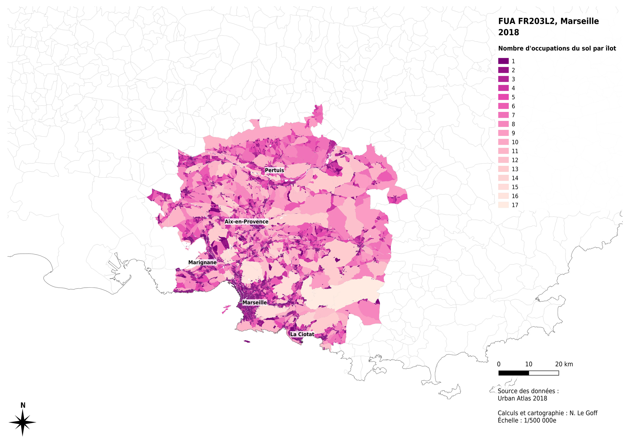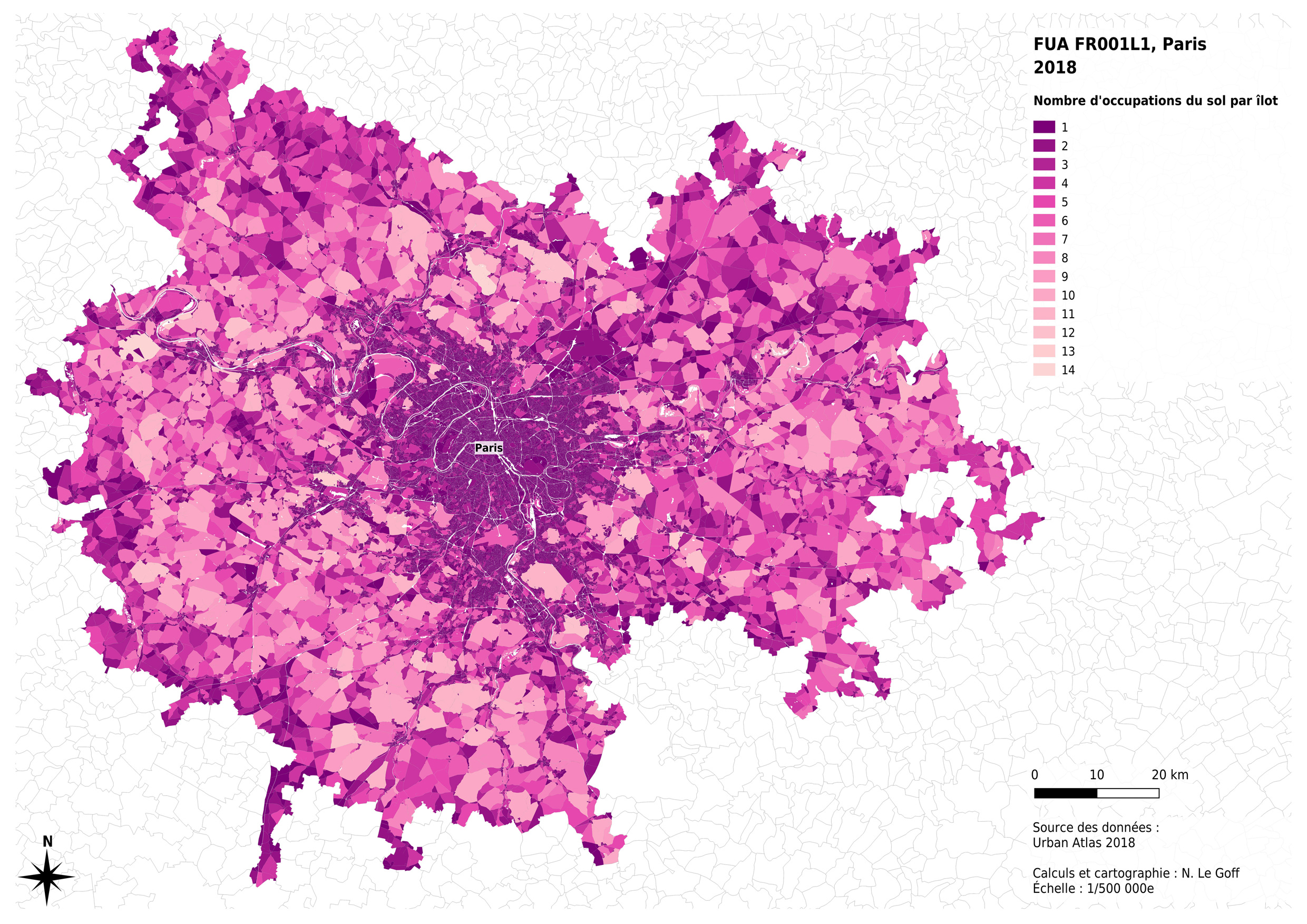 Dès lors que les îlots sont définis à partir des occupations du sol, il est possible de compter le nombre d’occupations du sol pour chaque îlot.