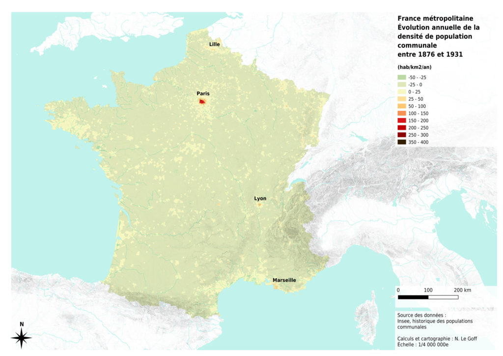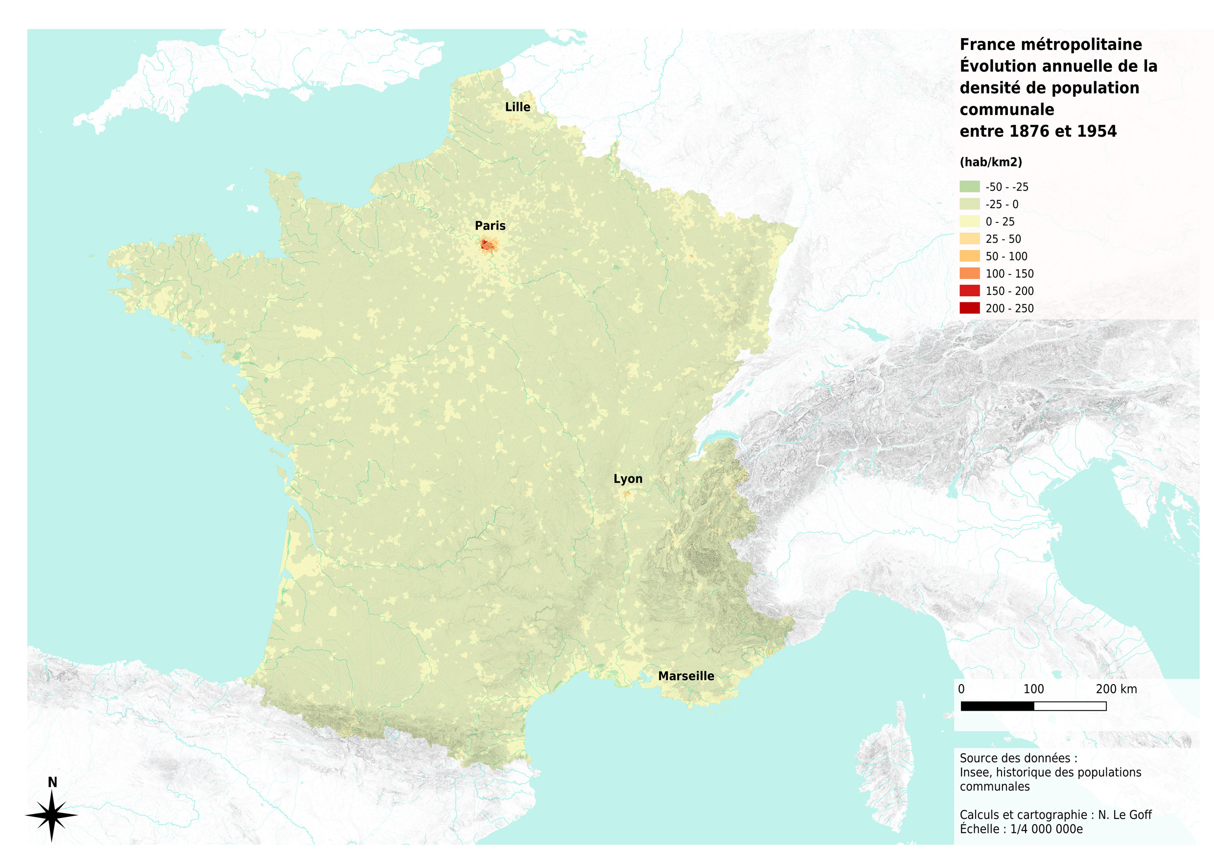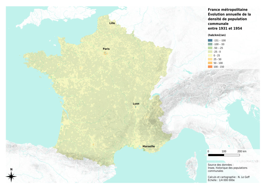 Cette modification des dynamiques de densité de population à partir de 1931 est aussi perceptible à l’échelle nationale.