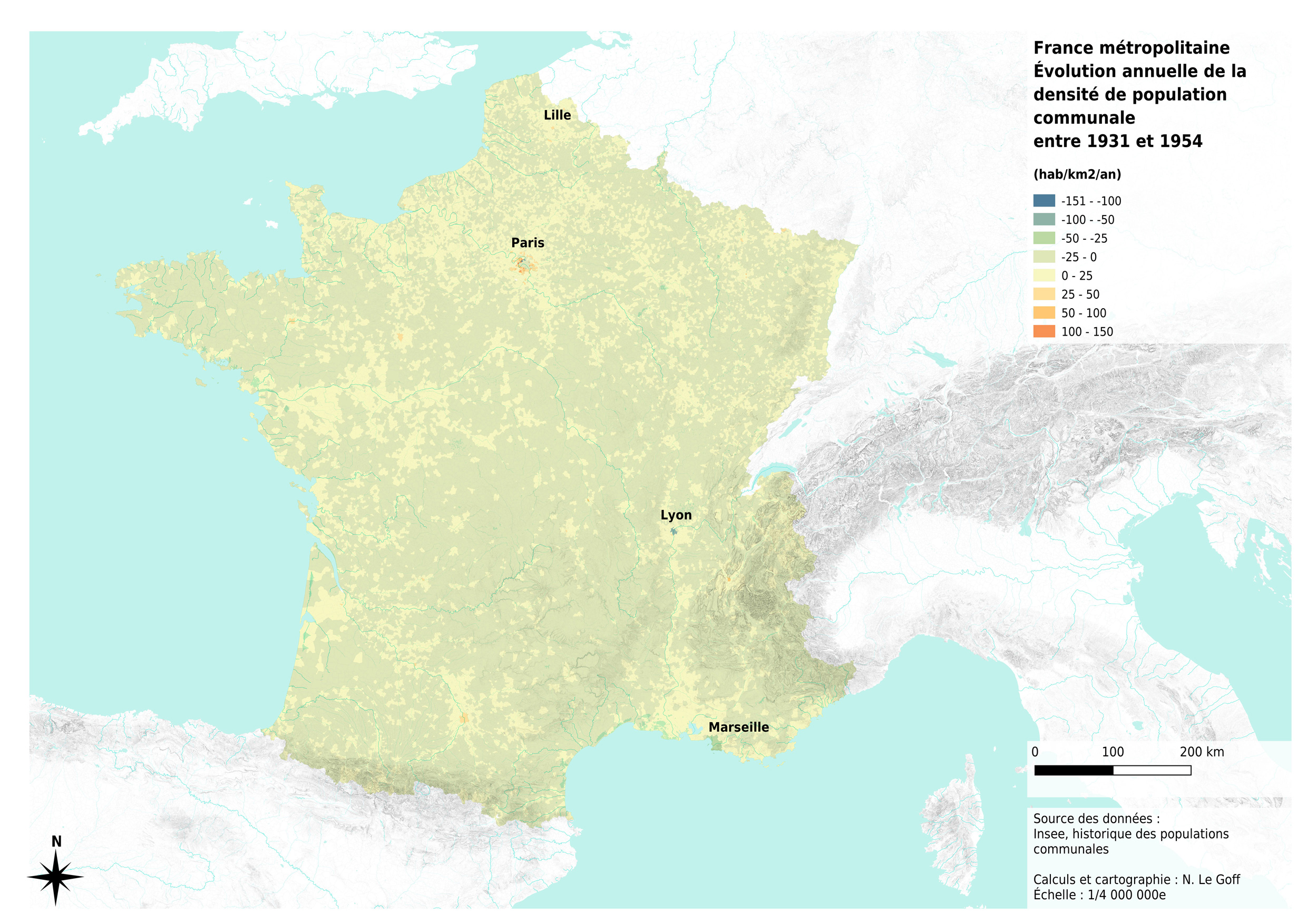 Cette modification des dynamiques de densité de population à partir de 1931 est aussi perceptible à l’échelle nationale.